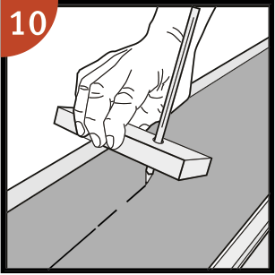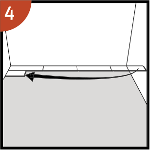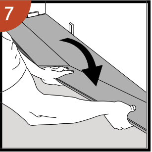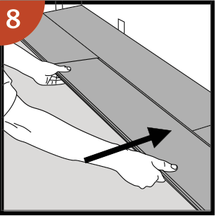 Deja el panel en una posición levemente inclinada hacia arriba cuando empiece a encajar. Para facilitar aún más este paso, se puede colocar una cuña con el ángulo adecuado debajo del panel cerca del extremo corto como soporte.