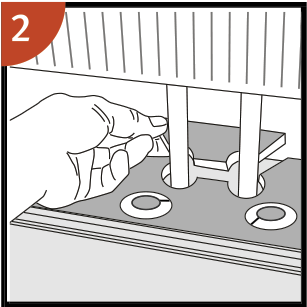 Ajusta la distancia a la pared frontal colocando espaciadores. Mantén los espaciadores en posición durante todo el tiempo de instalación y retíralos una vez que la instalación esté completa.