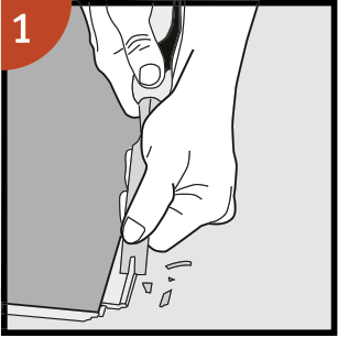 Ancho mínimo 50 mm. Coloca un espaciador en la pared antes de medir. Haz una herramienta de dibujo sencilla (un trozo de madera con un agujero) y marca el panel a lo largo de la pared. Corta los paneles longitudinalmente, incluyendo las lengüetas flexibles.