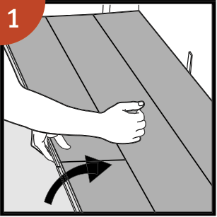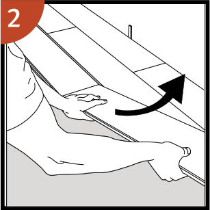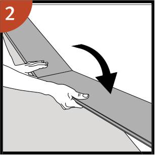 Coloca el tablón en ángulo con respecto al de la fila anterior, empuja hacia adelante y pliégalo hacia abajo al mismo tiempo.