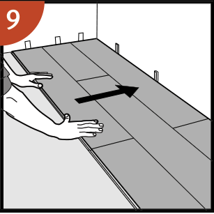 Empuja el tablón deslizándolo contra la fila del frente para que se alinee con el primer panel. Colócalo como el primer panel, ajustándolo firmemente.