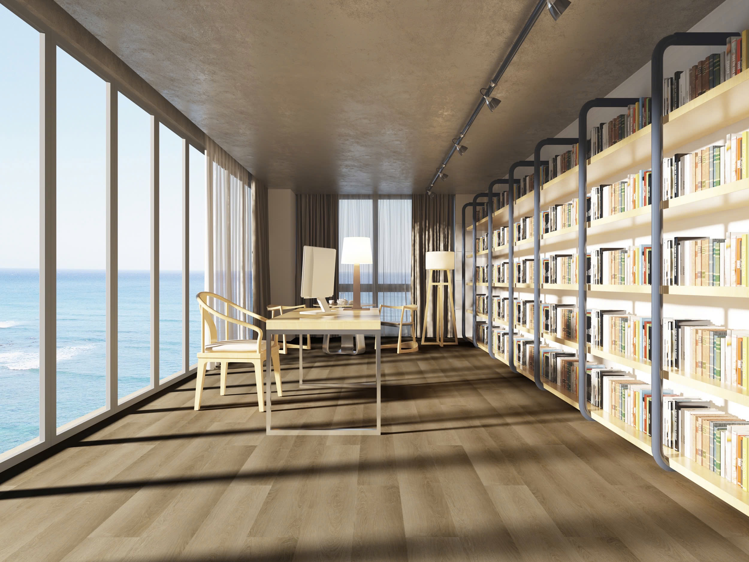 Madera Sable destaca por su tono marrón con matices cobrizos y vetas profundas. Es un suelo que añade fuerza visual, ideal para proyectos que no temen el contraste y la textura.